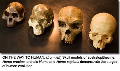 Esas tendencias habían comenzado probablemente en el tiempo en que los homínidos se separaron de los ancestros de los chimpancés (hace unos 5-7 millones de años aprox.) porque uno ve indicios de ello en los primates actuales. Si bien es un error común creer que los humanos tenemos relativamente grandes los lóbulos frontales, Kateria Semndeferi (U. de California, San Diego) y sus colegas han puesto en duda esta idea. En vez de crecer diferenciadamente, los lóbulos frontales de los homínidos cambiaron (fueron re-cableados) internamente. De moldes (endomoldes) de la parte interior de calaveras fosilizadas, uno ve signos de cambios de la forma del lóbulo frontal que probablemente iban asociados con re-cableados internos en un grupo de homínidos que vivieron hace entre 2.5 y 3.2 millones de años.(Australopitecus Africanus, llamado comúnmente Australopiteco grácil) Pero no sabemos cuando esos cambios comenzaron.