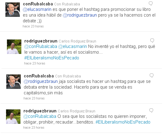 Hubo entre ambos otra conversación paralela por el hashtag que usaba Rodríguez Braun que también les traigo aquí: