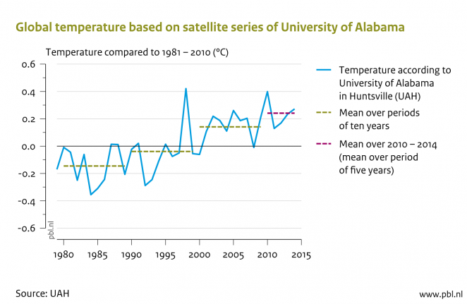 Nota: Conviene no olvidar, con toda esta sinsorgada / mentira del «año más caliente», que en las mediciones con satélites el año 2014 está muy lejos de ser ningún récord.