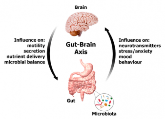 In addition to providing nutrients to our body, complex carbohydrates from plants (fiber) provides food to the gut microbes. These microbes turn the fiber (which our gut cannot break down and absorb) into absorbable molecules (like short chain fatty acids) which also can signal to the endocrine cells in our gut, and to the vagus nerve. These signals can reach the brain either through the circulation or via vagal nerve activity and affect brain structure and function. A good example for this communication is the feeling of fullness and wellbeing after a meal, or the nausea and bad feeling associated with food poisoning. An unhealthy diet (high animal fat, high sugar, low in fiber) will change the gut microbiome, make the gut more leaky, and cause low grade immune activation, which can also affect the brain. Low grade immune activation can be associated with such symptoms as brain fog, fatigue and loss of energy.